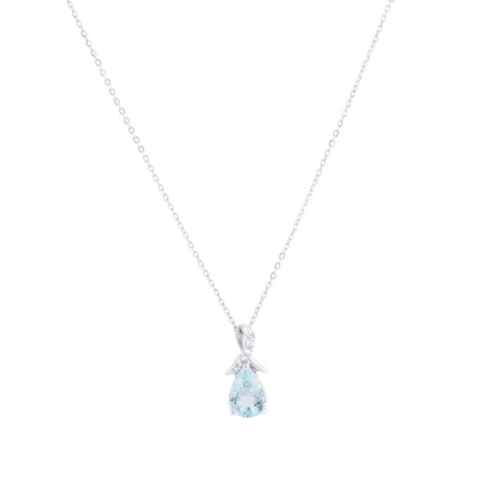This delightful pendant sits on a 45cm 9ct white gold chain and features a 5mm x 7mm pear-cut blue topaz, alongside a delicate trickle of brilliant diamonds. The 9ct white gold setting enhances the bright hues of the topaz, while the diamonds provide a subtle sparkle. Perfect for everyday elegance or special occasions, this pendsnt is a stunning addition to any jewellery collection.
