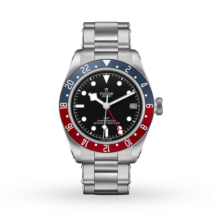 This Black Bay GMT model sports a distinctive blue and burgundy bezel around its durable 41mm steel case. Driven by self-winding mechanical movement with a bidirectional rotor system, this outstanding watch provides a power reserve of approximately 70 hours and is waterproof to 200 meters.