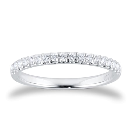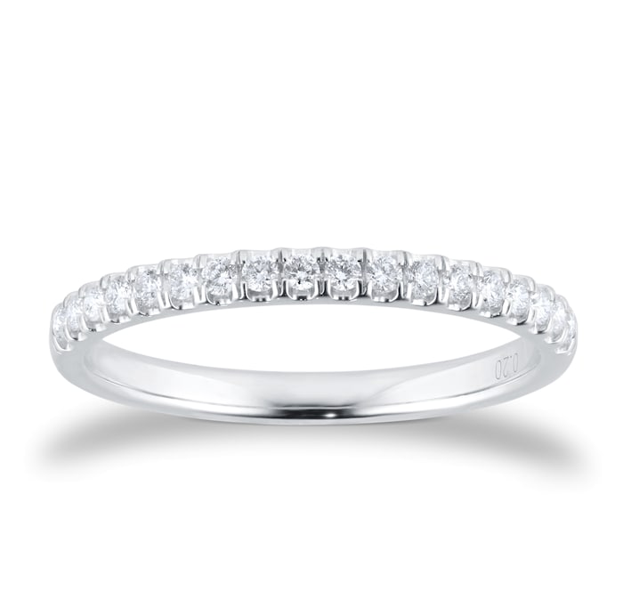 Round brilliant cut diamonds with 0.20ct total carat weight adorn a beautiful 9ct white gold band.