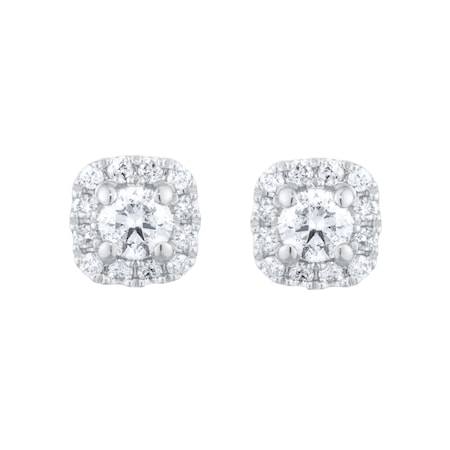 With 0.34 carat total diamond weight, this wonderful pair of halo diamond stud earrings are a special gift for someone just as special.