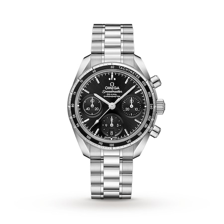 The iconic seahorse medallion is embossed into the caseback, paying homage to the rich history of Speedmaster, while the stainless steel bezel includes a tachymeter to measure speed based on distance.