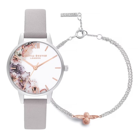 Olivia Burton Watercolour Florals 30mm Ladies Watch and Bracelet Gift Set MPN: OBGSET45