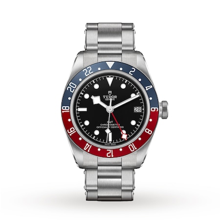 This Black Bay GMT model sports a distinctive blue and burgundy bezel around its durable 41mm steel case. Driven by self-winding mechanical movement with a bidirectional rotor system, this outstanding watch provides a power reserve of approximately 70 hours and is waterproof to 200 meters.