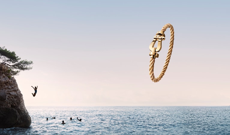 One of the Maison’s signature pieces, the Force 10 bracelet was created in 1966 and reflects contemporary fashion as much as and the maritime and sporting influences behind its inception. This surprise encounter of a woven steel sailing cable with a gold or steel buckle goes beyond jewellery, having come to symbolise a sense of freedom, achievement, courage and casual elegance.